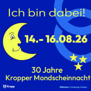 Alle zwei Jahre verwandelt sich Kropp in eine Bühne voller Leben, Musik und Begegnungen – es ist wieder Mondscheinnacht! Dieses besondere Fest zieht Menschen aus nah und fern an und zeigt, was unsere Gemeinde so liebenswert macht: Zusammenhalt, Offenheit und Lebensfreude.